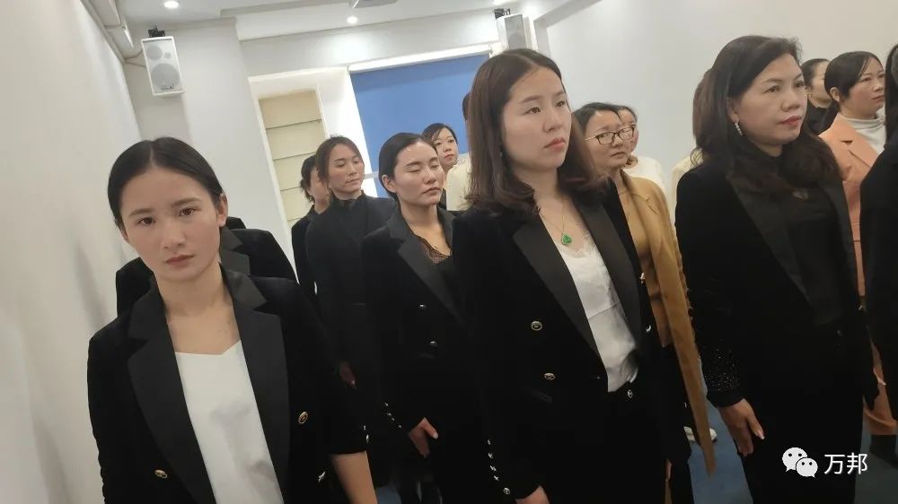 培訓開始,萬邦集團CEO鐵嘴李輝老師和謝老師帶領大家展開軍事化訓練,列隊站軍姿,分組喊口號,眼神對視訓練......