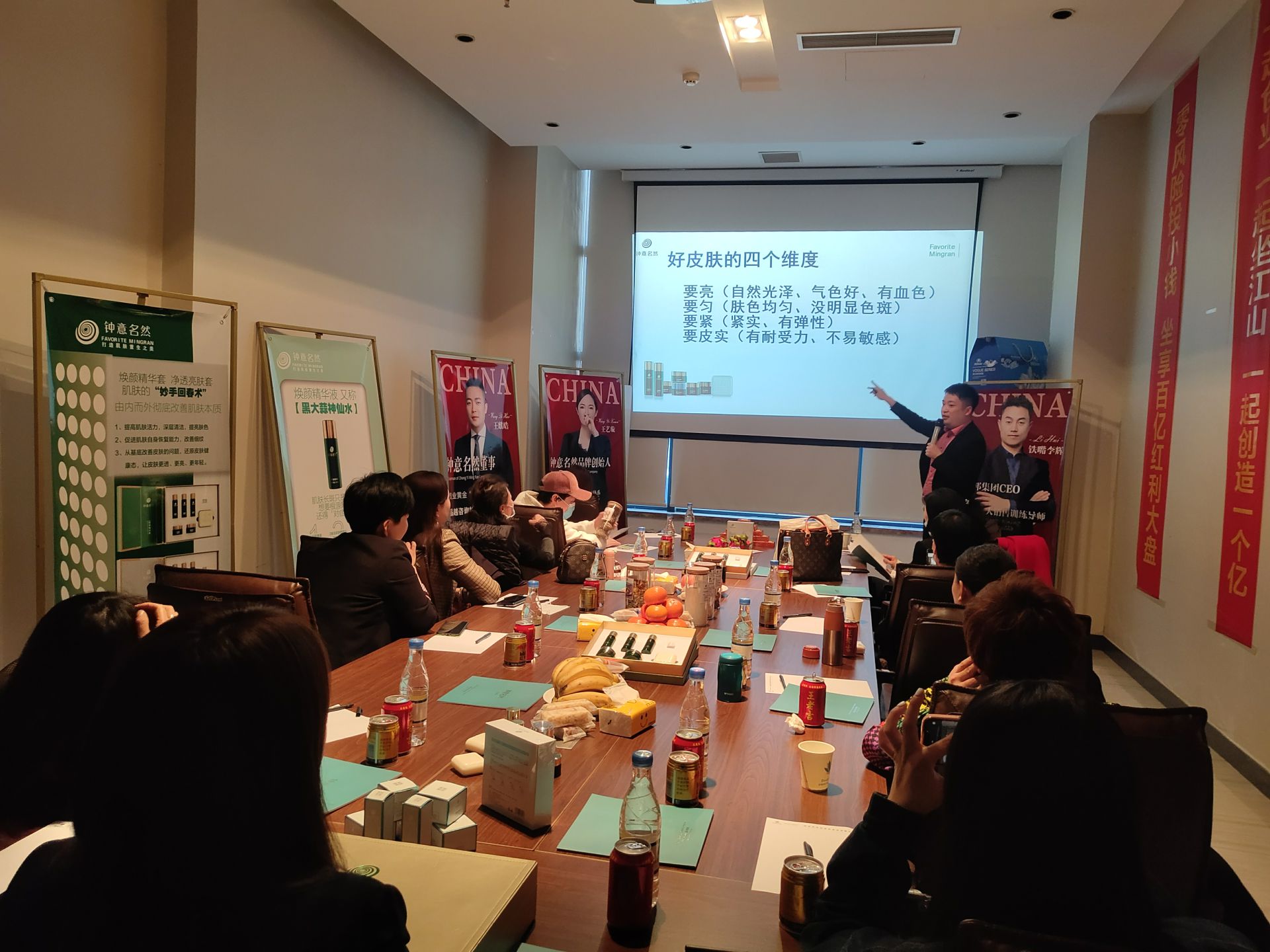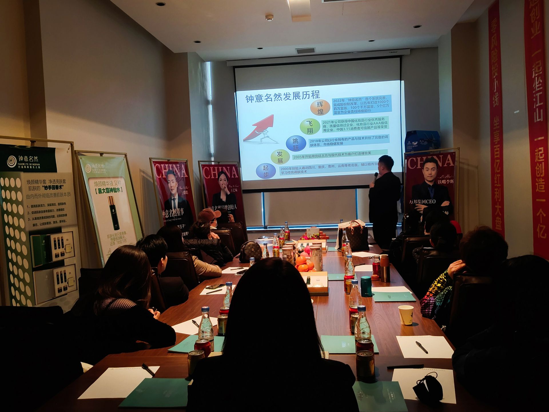 鐘意名然董事長王總上臺對產品系列做了說明,分析了鐘意名然獨有的優勢,從品牌到產品,從方法到服務……獨一無二的優勢與貼心完善的幫扶,令在場各位看到公司未來的發展藍圖,令人心動。
