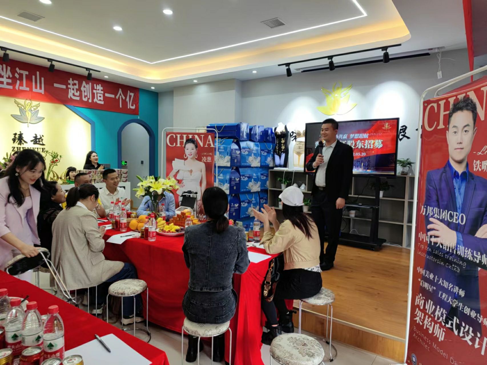 臻越創始人兼董事長賀總上臺致辭,對大家的到來表示熱烈的歡迎,在當今國內外經濟形勢下和疫情的沖擊下,想要沖出劣勢重圍,開拓區域新市場,獲得長足發展,就必須要尋找新的出路。希望大家可以一同前行,一同攀登,投身未來美好事業。并在現場為大家送上豐厚的禮品。