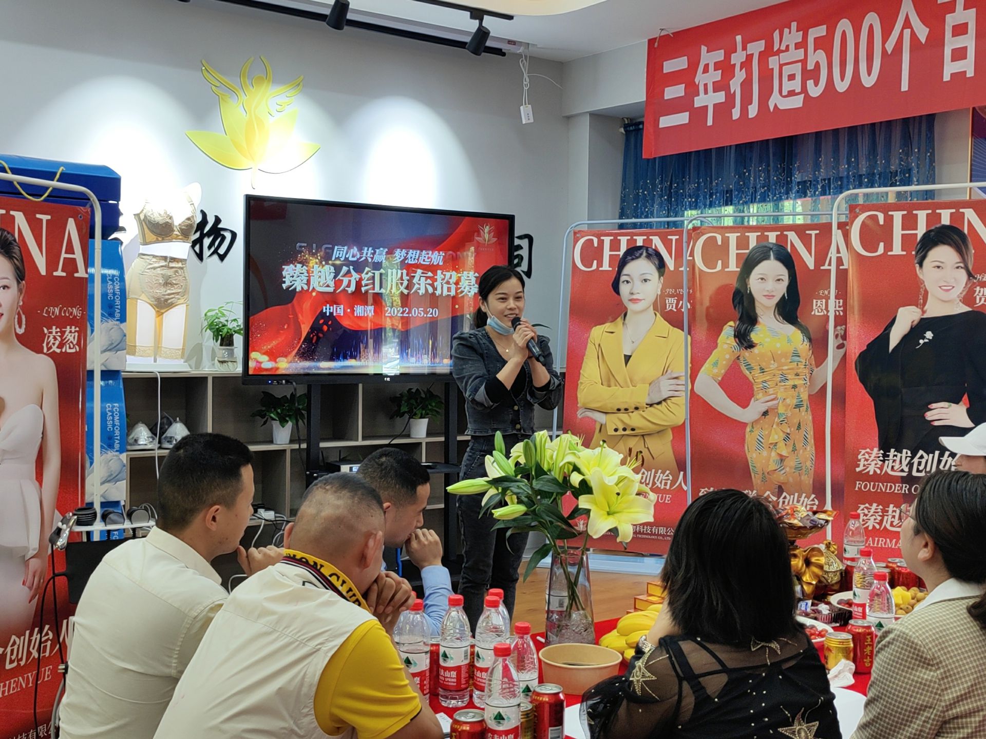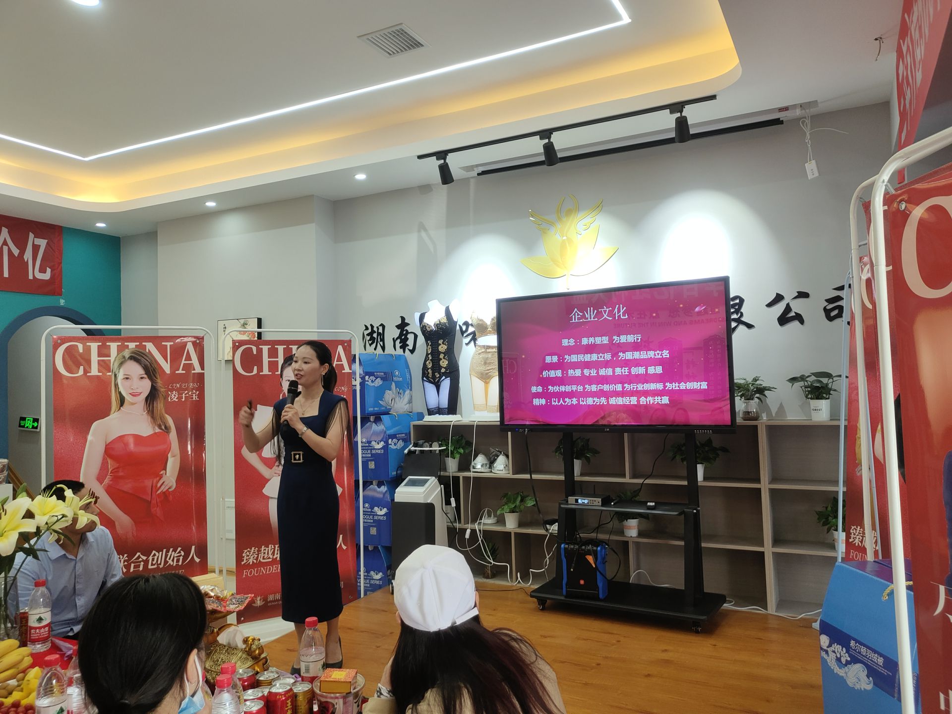 臻越創始人凌總上臺為大家介紹臻越的企業文化、體雕的相關知識、亮點優勢及市場反饋情況,讓大家看見臻越的獨特性,讓女性由內而外綻放自然之美,為客戶提供全方位服務,贏得大家的認可與贊賞。