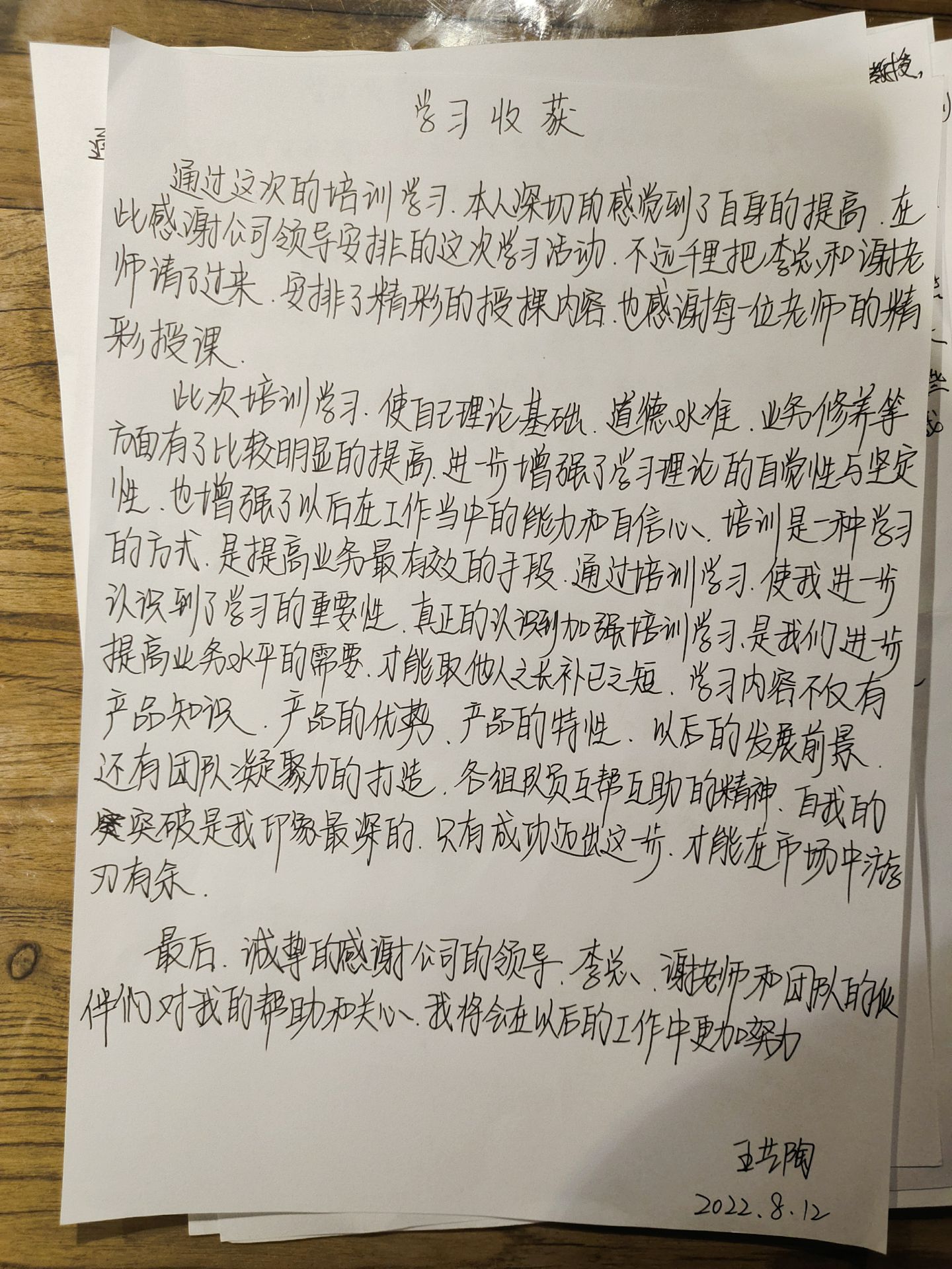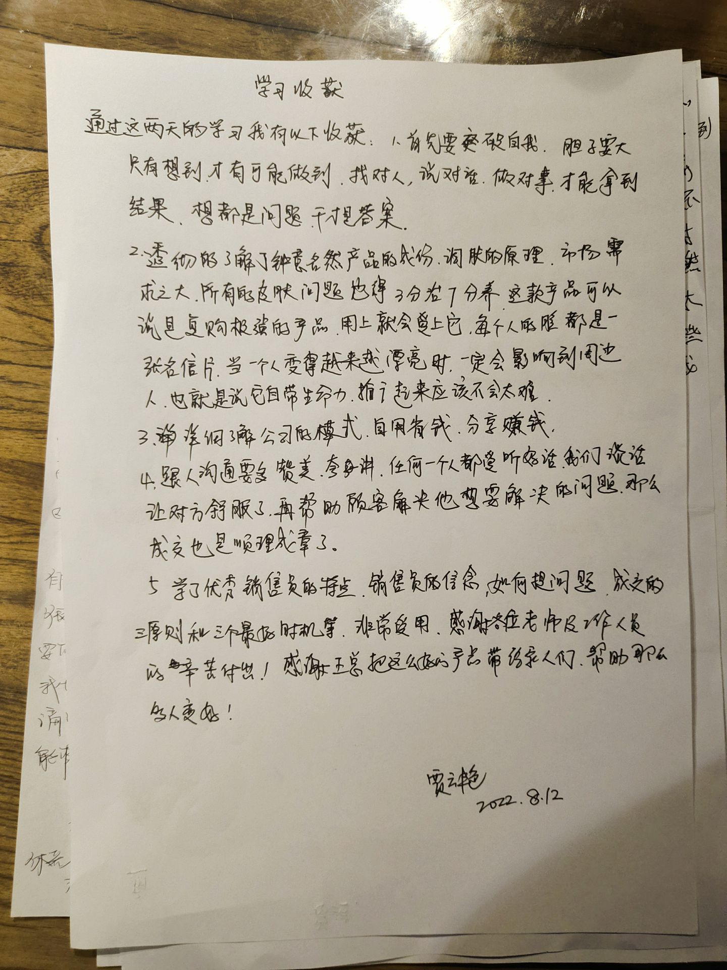 在這次特訓會中,各位學員們都寫下心得體會,記錄自己的蛻變之旅,分享自己的每一次進步,紛紛感謝公司和萬邦老師為自己提供了成長的機會。