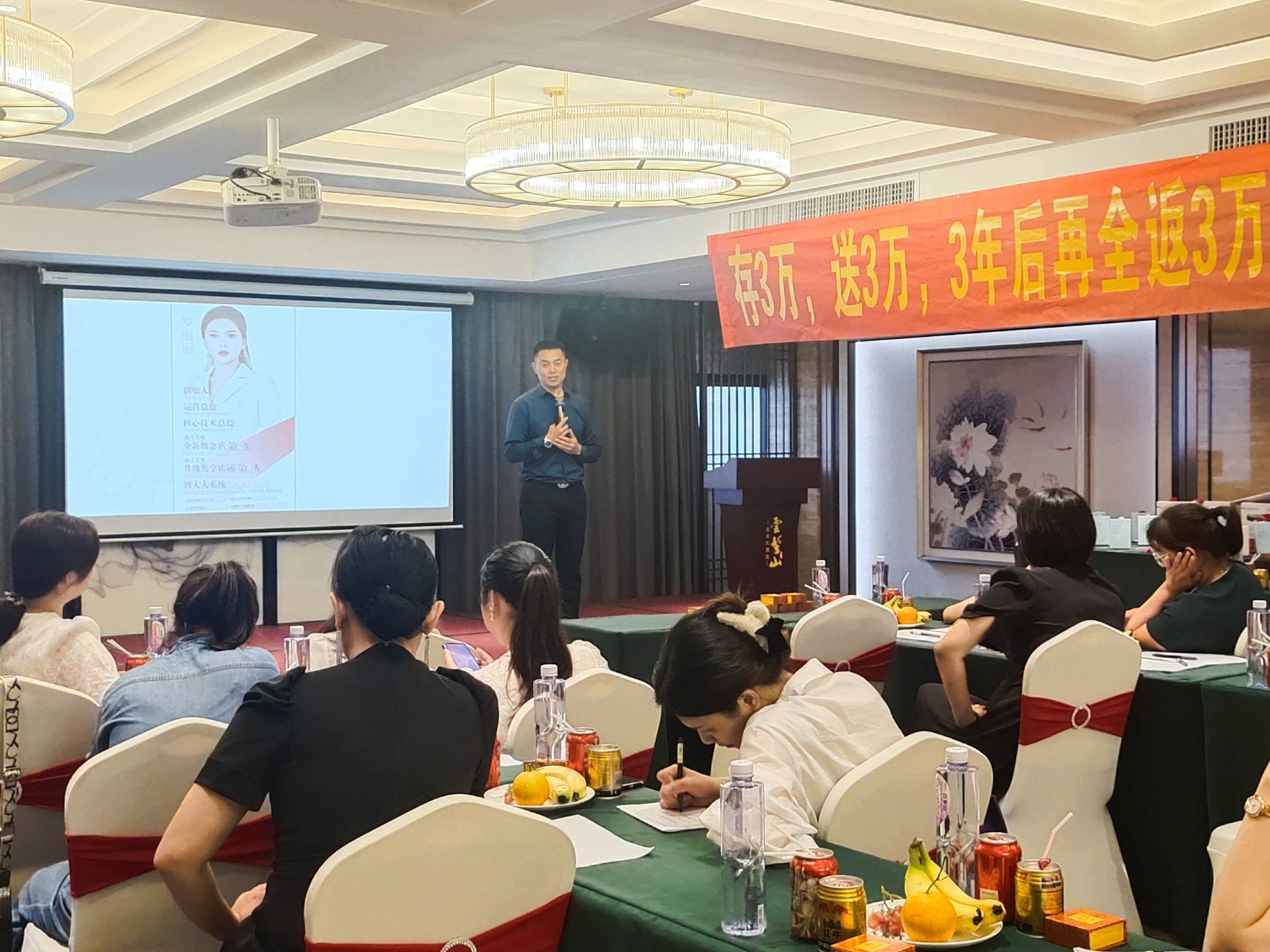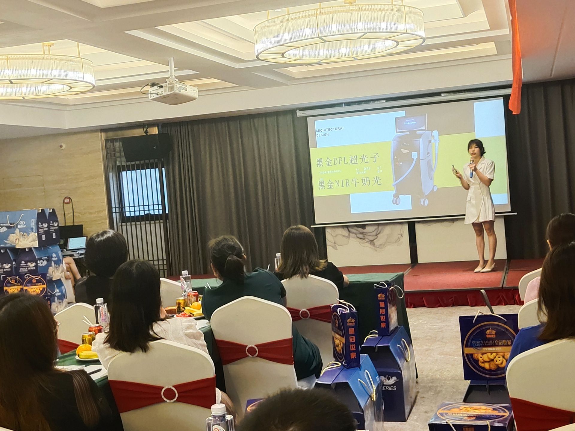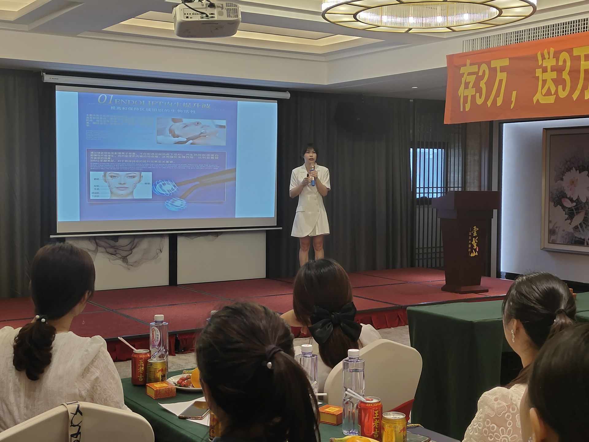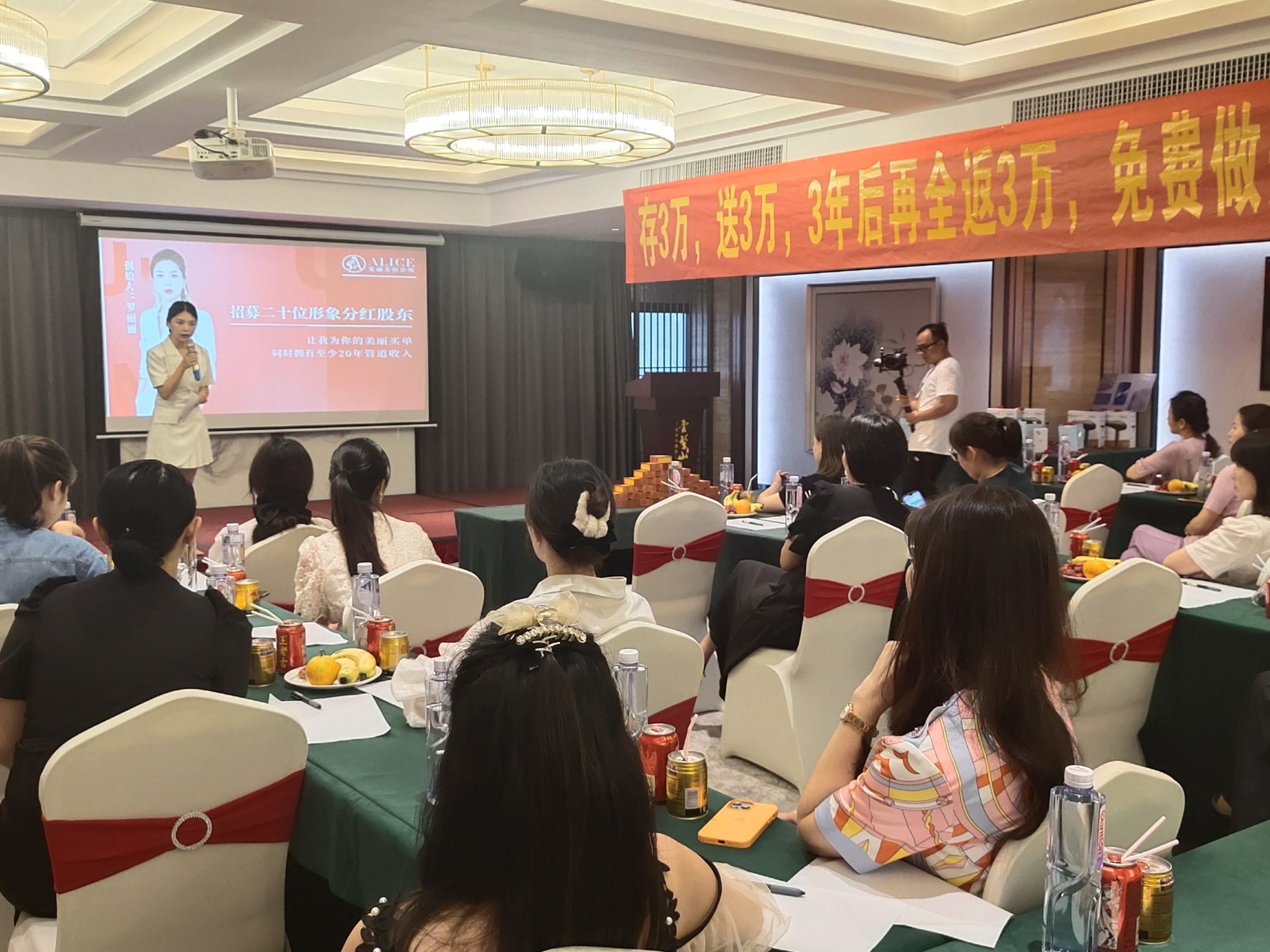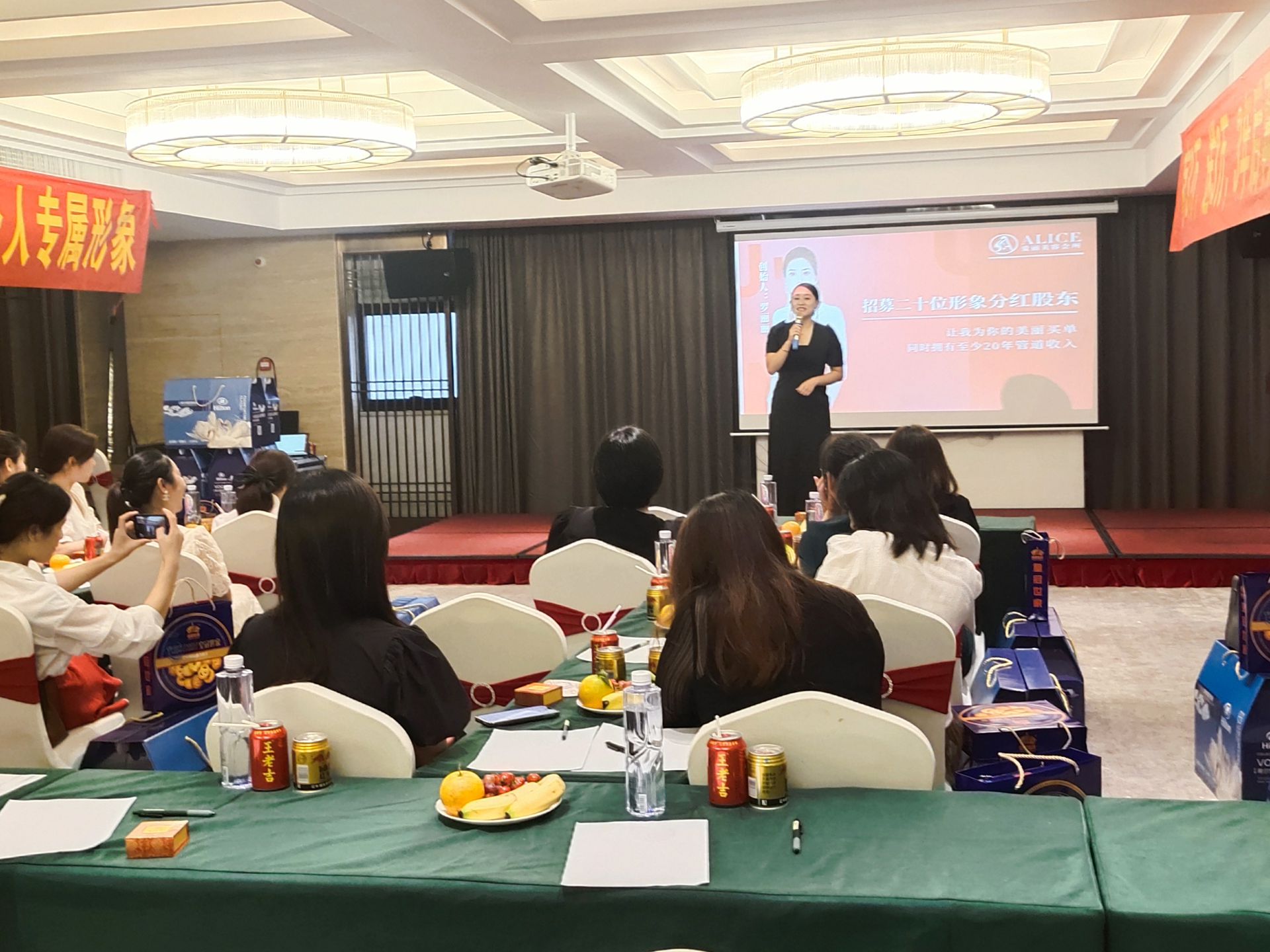 愛麗會所聯(lián)合創(chuàng)始人潘總上臺分享,介紹愛麗的相關品項及高端儀器,讓大家充分了解愛麗的特色與亮點,闡述了愛麗的實力和未來發(fā)展趨勢,贏得大家贊賞。